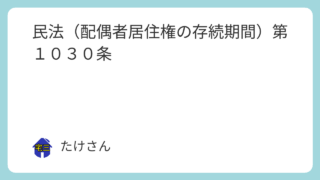 (配偶者居住権の存続期間)第千三十条 配偶者居住権の存続期間は、配偶者の終身の間とする。ただし、遺産の分割の協議若しくは遺言に別段の定めがあるとき、又は家庭裁判所が遺産の分割の審判において別段の定めをしたときは、その定めるところによる。民法...