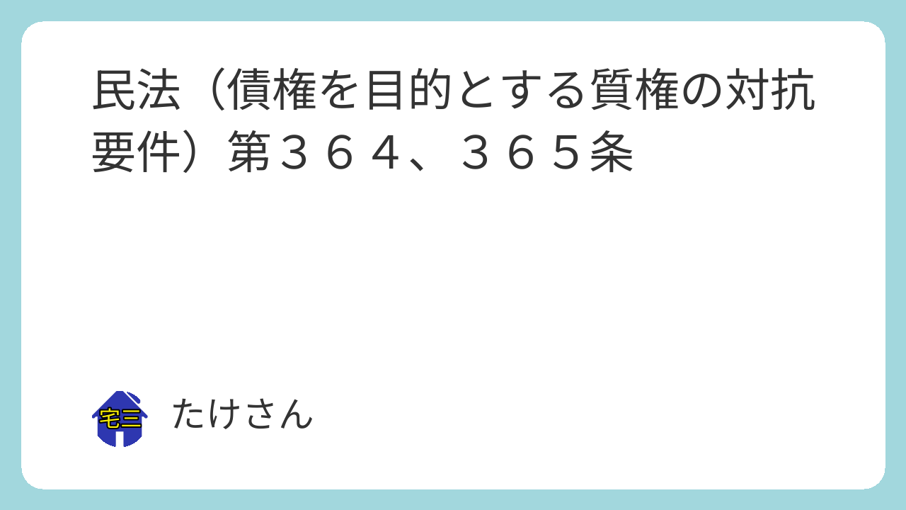第三百六十四条 債権を目的とする質権の設定(現に発生していない債権を目的とするものを含む。)は、第四百六十七条の規定に従い、第三債務者にその質権の設定を通知し、又は第三債務者がこれを承諾しなければ、これをもって第三債務者その他の第三者に対抗することができない。