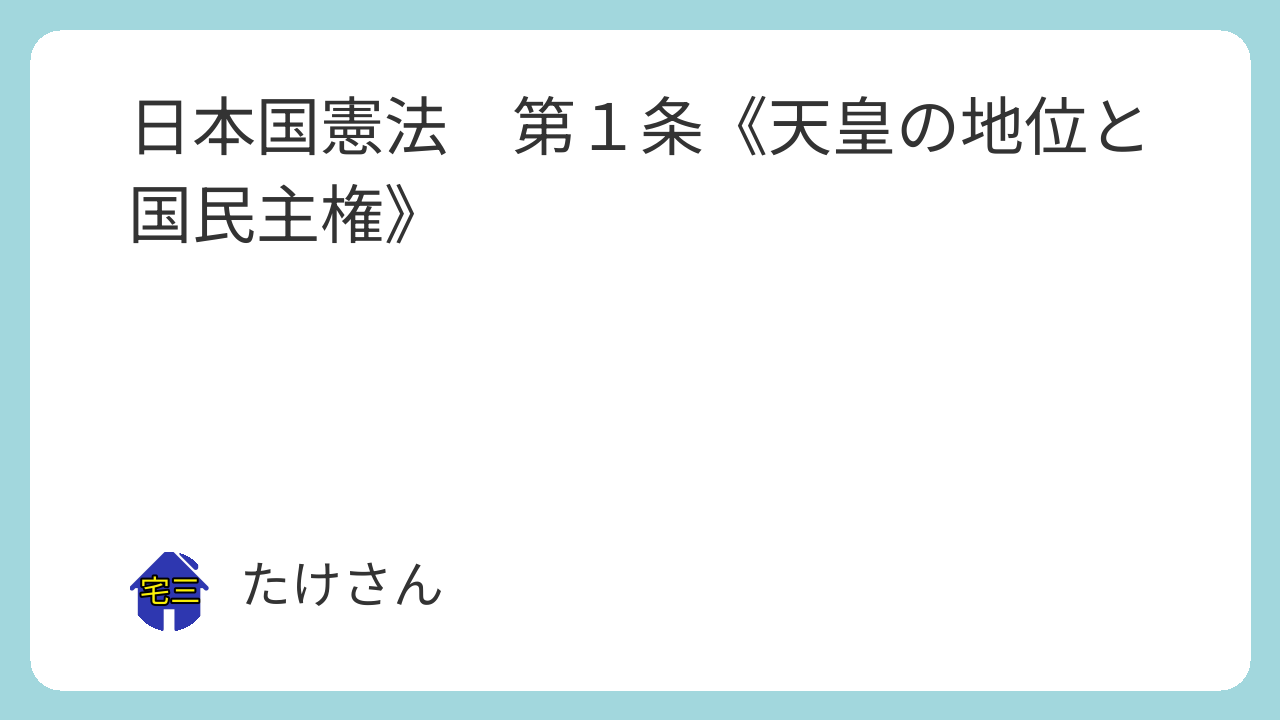 第1条 天皇は、日本国の象徴であり日本国民統合の象徴であつて、この地位は、主権の存する日本国民の総意に基く。