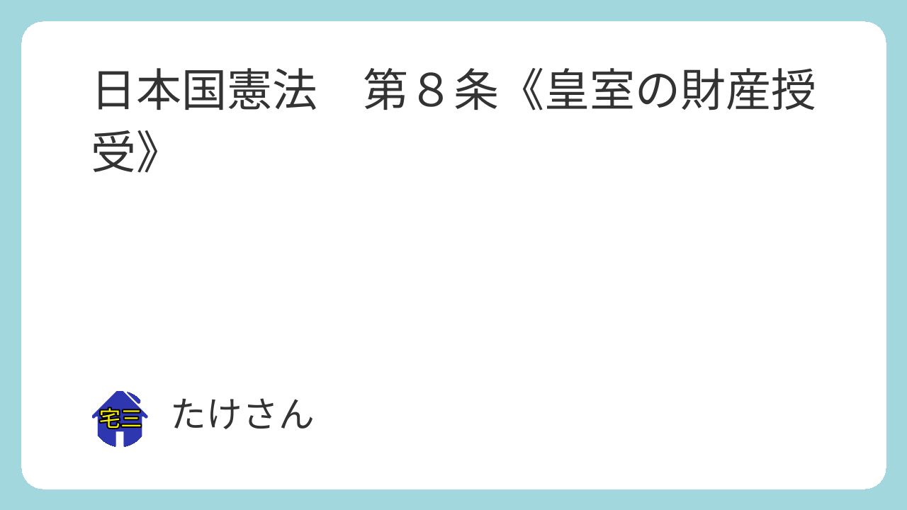 日本国憲法第8条 皇室に財産を譲り渡し、又は皇室が、財産を譲り受け、若しくは賜与することは、国会の議決に基かなければならない。