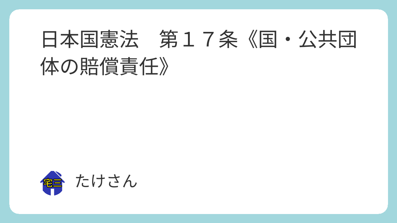 日本国憲法第17条 何人も、公務員の不法行為により、損害を受けたときは、法律の定めるところにより、国又は公共団体に、その賠償を求めることができる。