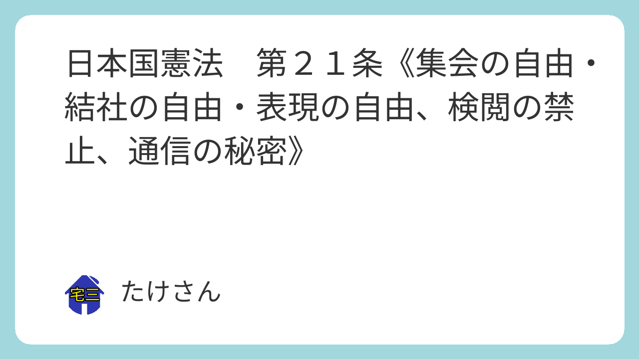 日本国憲法第21条 集会、結社及び言論、出版その他一切の表現の自由は、これを保障する。