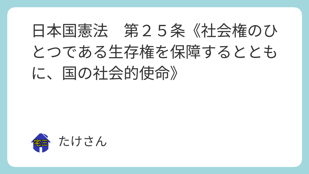 日本国憲法第25条 すべて国民は、健康で文化的な最低限度の生活を営む権利を有する。