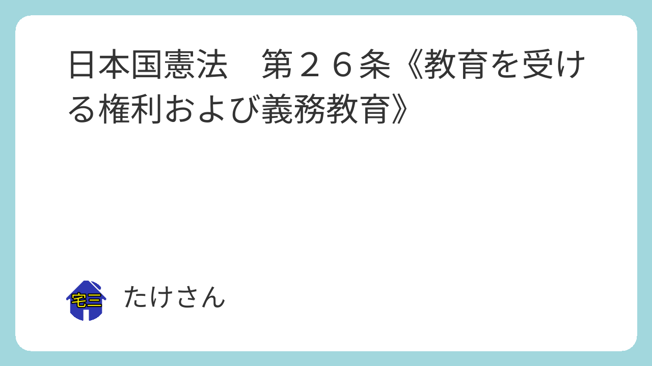 日本国憲法第26条 すべて国民は、法律の定めるところにより、その能力に応じて、ひとしく教育を受ける権利を有する。