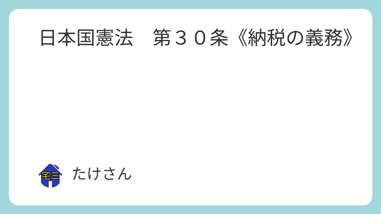 日本国憲法第30条 国民は、法律の定めるところにより、納税の義務を負ふ。