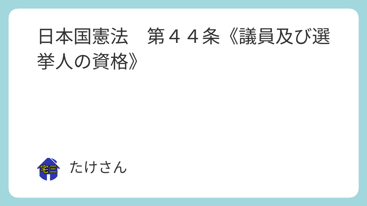 第44条 両議院の議員及びその選挙人の資格は、法律でこれを定める。