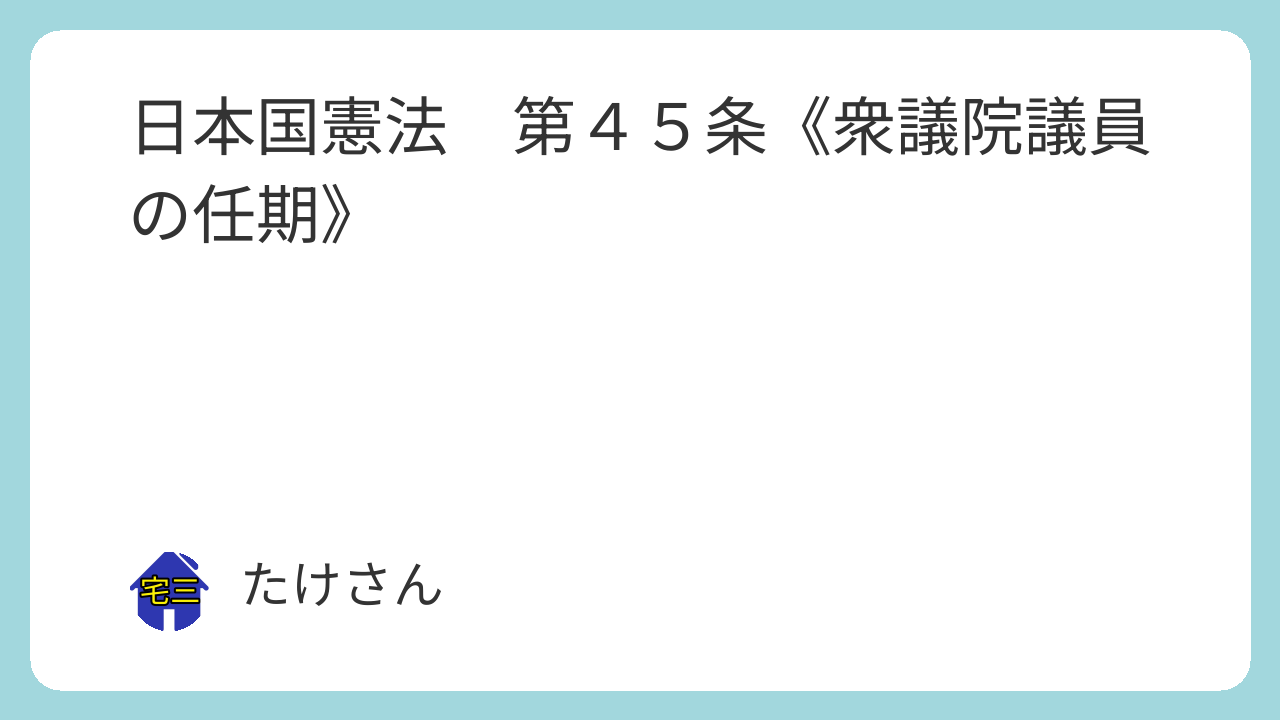 日本国憲法第45条 衆議院議員の任期は、4年とする。
