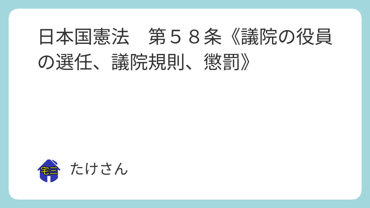 日本国憲法第58条 両議院は、各々その議長その他の役員を選任する。