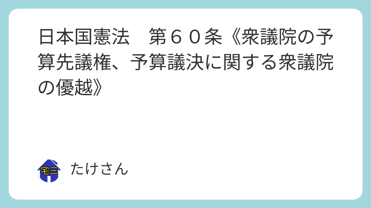 日本国憲法第60条 予算は、さきに衆議院に提出しなければならない。