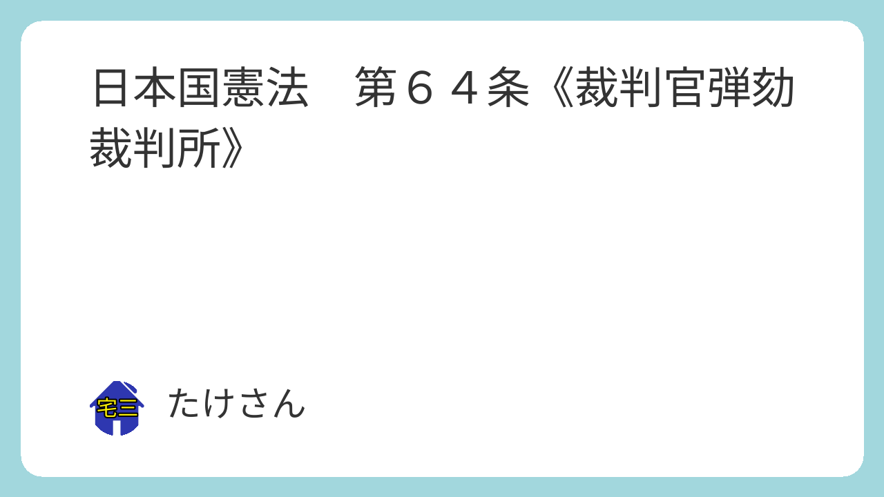 日本国憲法第64条 国会は、罷免の訴追を受けた裁判官を裁判するため、両議院の議員で組織する弾劾裁判所を設ける。