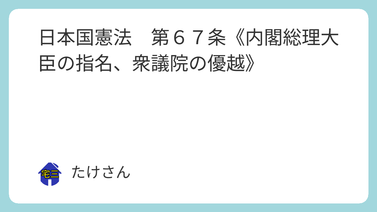 第67条 内閣総理大臣は、国会議員の中から国会の議決で、これを指名する。この指名は、他のすべての案件に先だつて、これを行ふ。