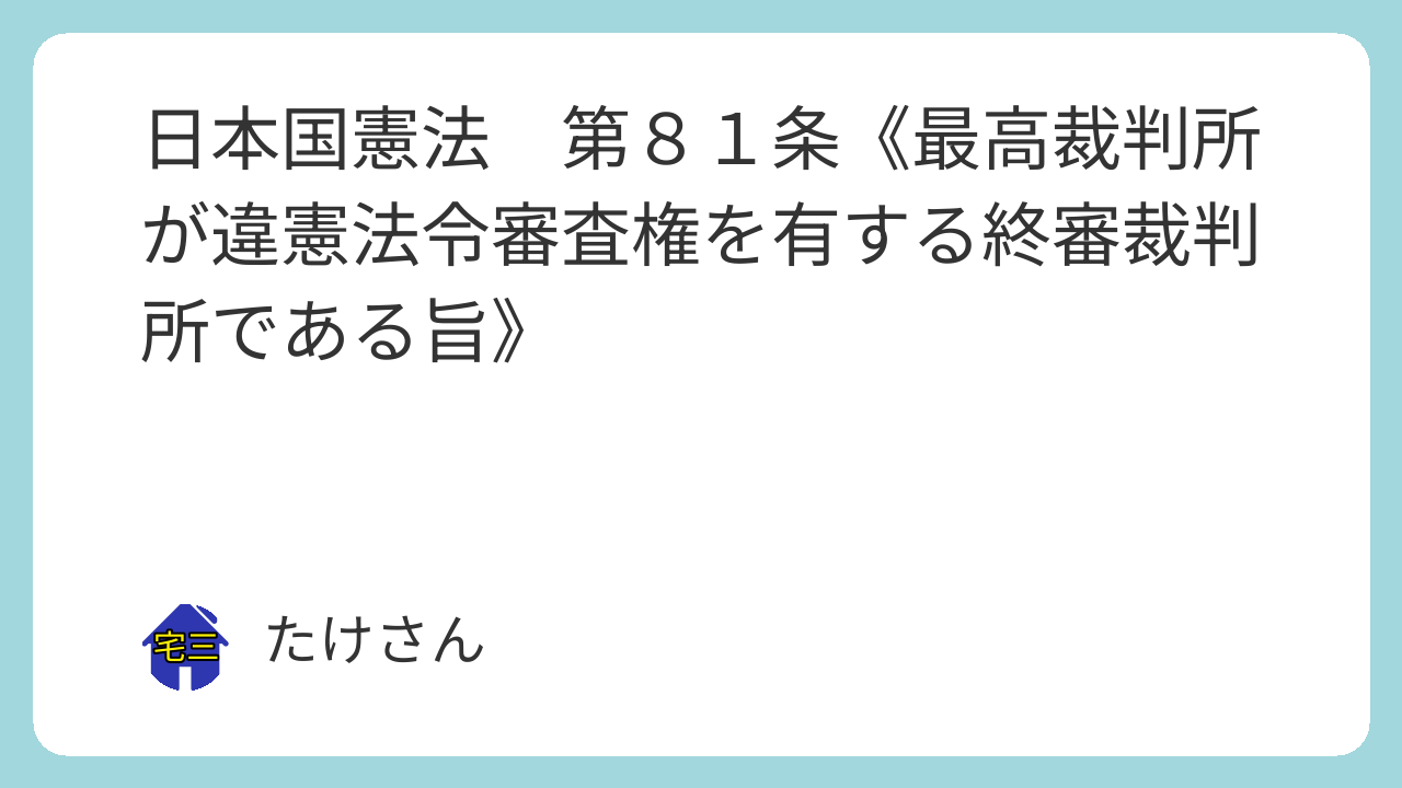 第81条 最高裁判所は、一切の法律、命令、規則又は処分が憲法に適合するかしないかを決定する権限を有する終審裁判所である。