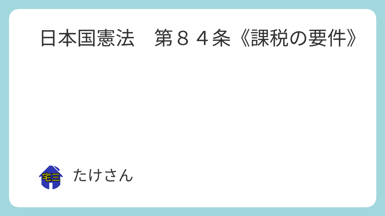 第84条 あらたに租税を課し、又は現行の租税を変更するには、法律又は法律の定める条件によることを必要とする。