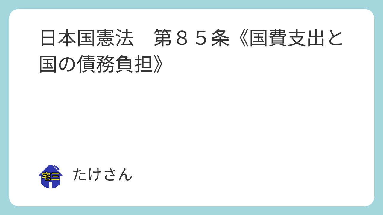 第85条 国費を支出し、又は国が債務を負担するには、国会の議決に基くことを必要とする。