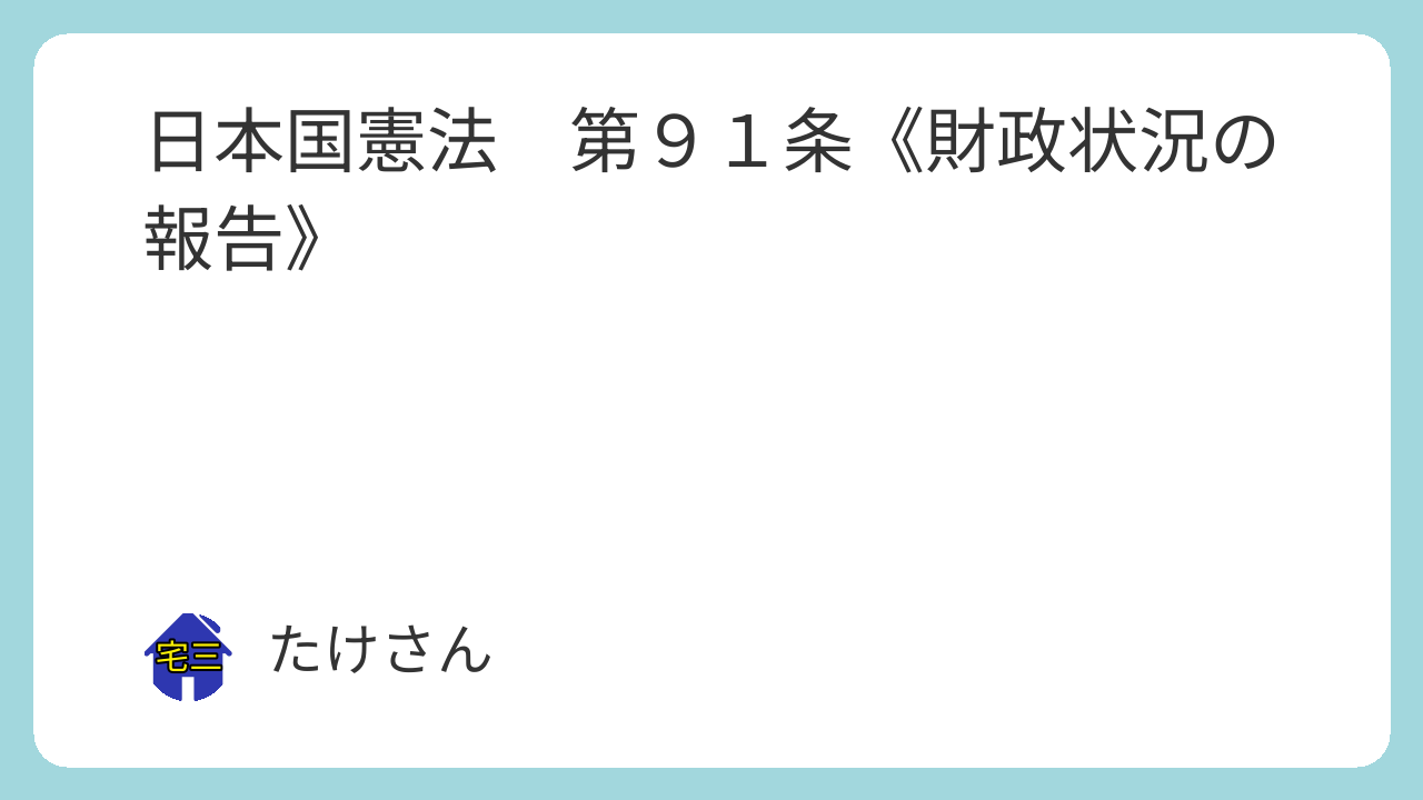 第91条 内閣は、国会及び国民に対し、定期に、少くとも毎年1回、国の財政状況について報告しなければならない。
