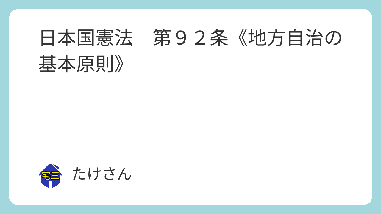 第92条 地方公共団体の組織及び運営に関する事項は、地方自治の本旨に基いて、法律でこれを定める。