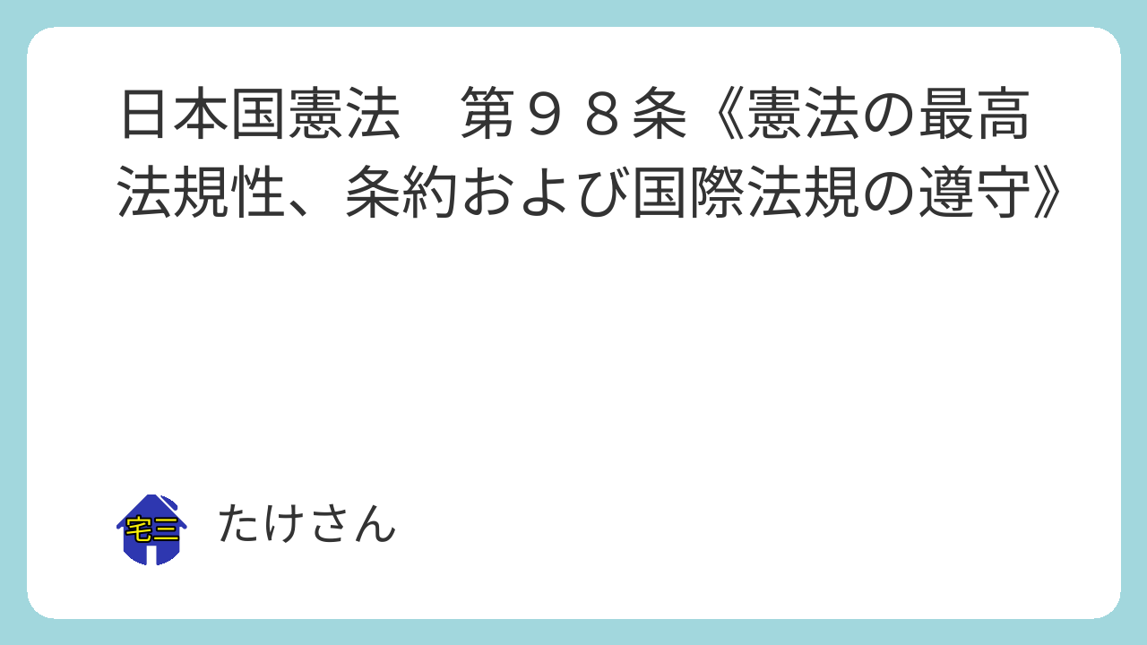 日本国憲法第98条 この憲法は、国の最高法規であつて、その条規に反する法律、命令、詔勅及び国務に関するその他の行為の全部又は一部は、その効力を有しない。