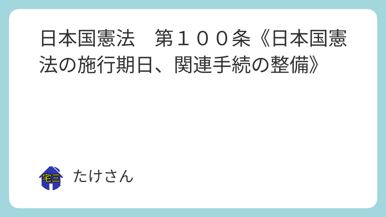 第100条 この憲法は、公布の日から起算して6箇月を経過した日から、これを施行する。