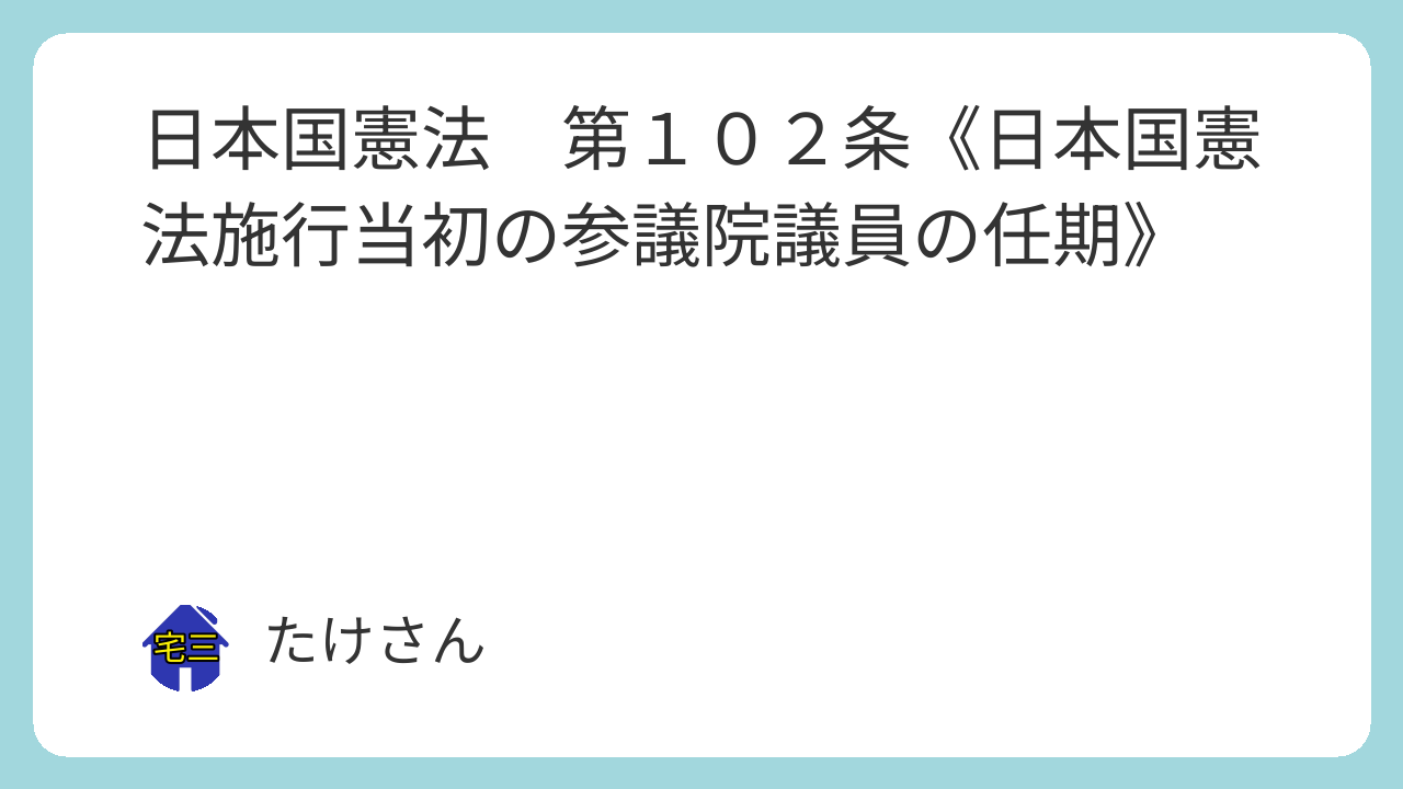 第102条 この憲法による第一期の参議院議員のうち、その半数の者の任期は、これを3年とする。その議員は、法律の定めるところにより、これを定める。