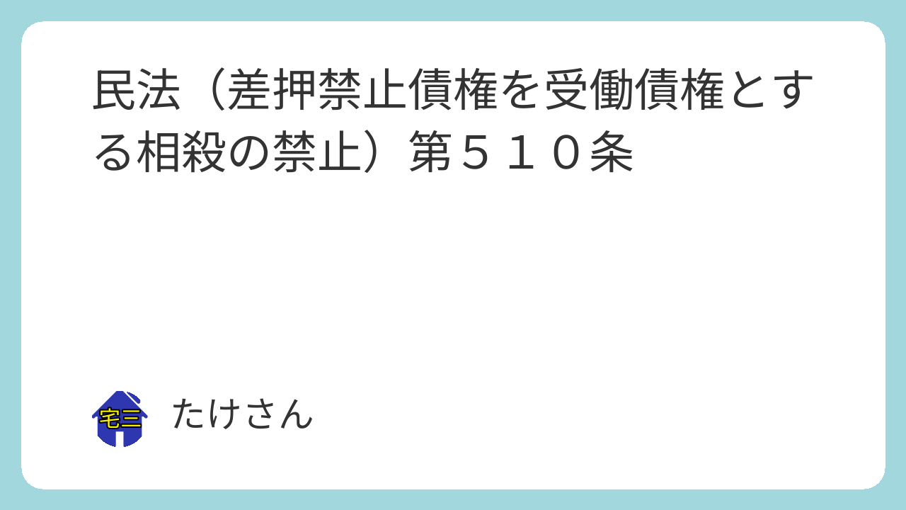 第五百十条 債権が差押えを禁じたものであるときは、その債務者は、相殺をもって債権者に対抗することができない。
