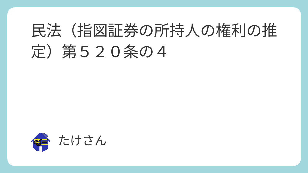 第五百二十条の四 指図証券の所持人が裏書の連続によりその権利を証明するときは、その所持人は、証券上の権利を適法に有するものと推定する。