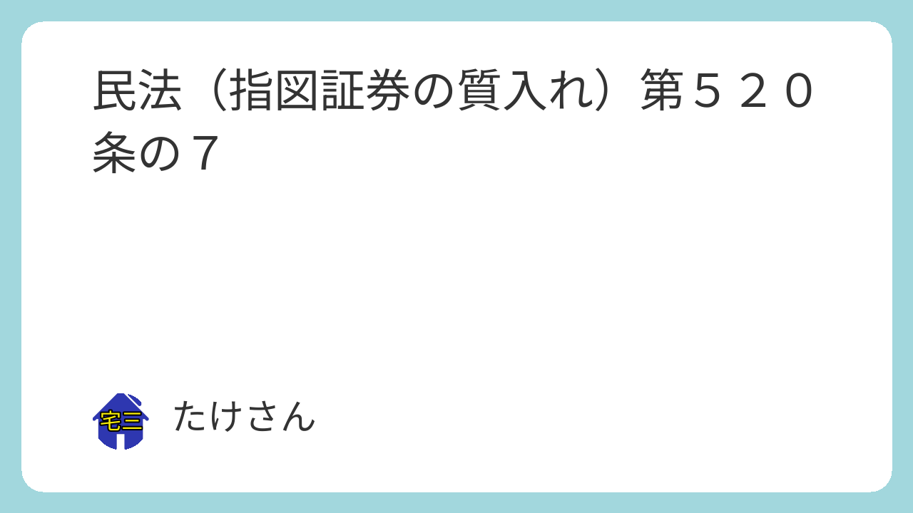 第五百二十条の七 第五百二十条の二から前条までの規定は、指図証券を目的とする質権の設定について準用する。
