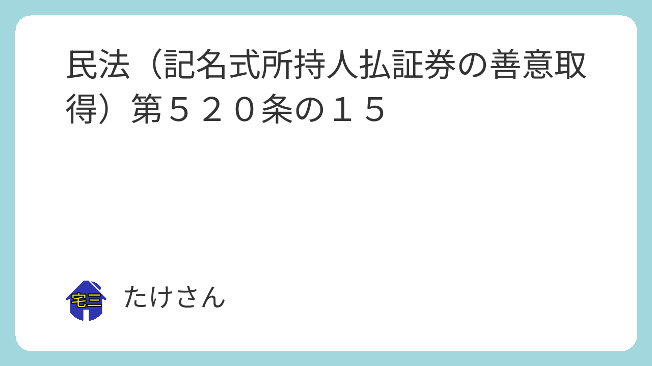第五百二十条の十五 何らかの事由により記名式所持人払証券の占有を失った者がある場合において、その所持人が前条の規定によりその権利を証明するときは、その所持人は、その証券を返還する義務を負わない。ただし、その所持人が悪意又は重大な過失によりその証券を取得したときは、この限りでない。