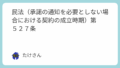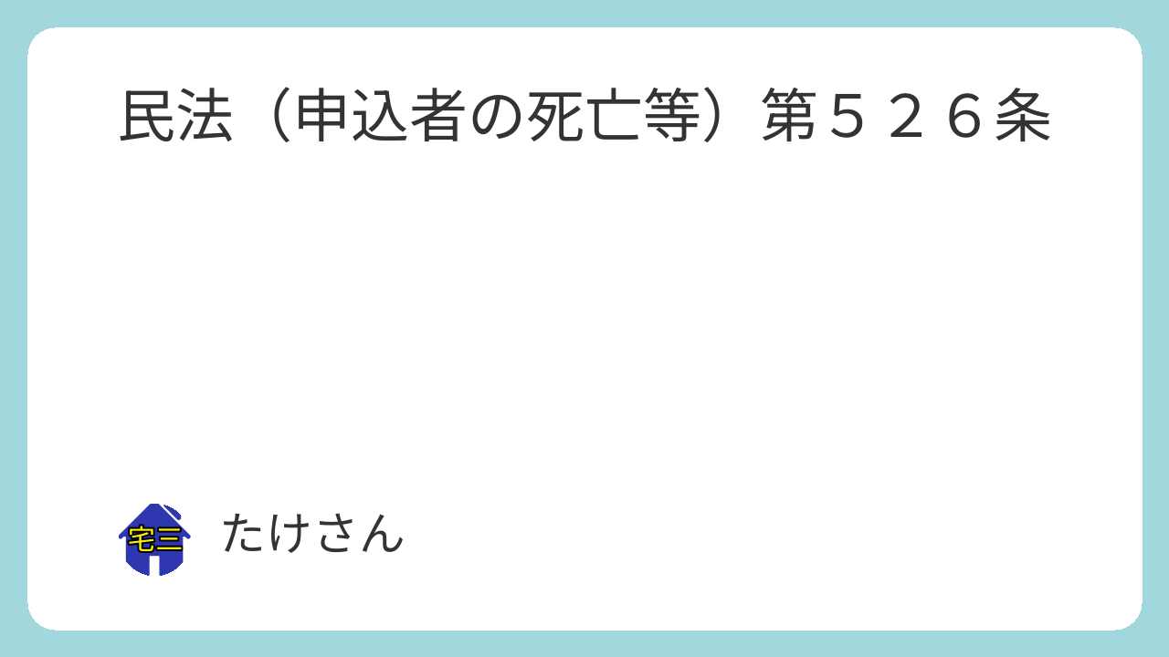 第五百二十六条 申込者が申込みの通知を発した後に死亡し、意思能力を有しない常況にある者となり、又は行為能力の制限を受けた場合において、申込者がその事実が生じたとすればその申込みは効力を有しない旨の意思を表示していたとき、又はその相手方が承諾の通知を発するまでにその事実が生じたことを知ったときは、その申込みは、その効力を有しない。