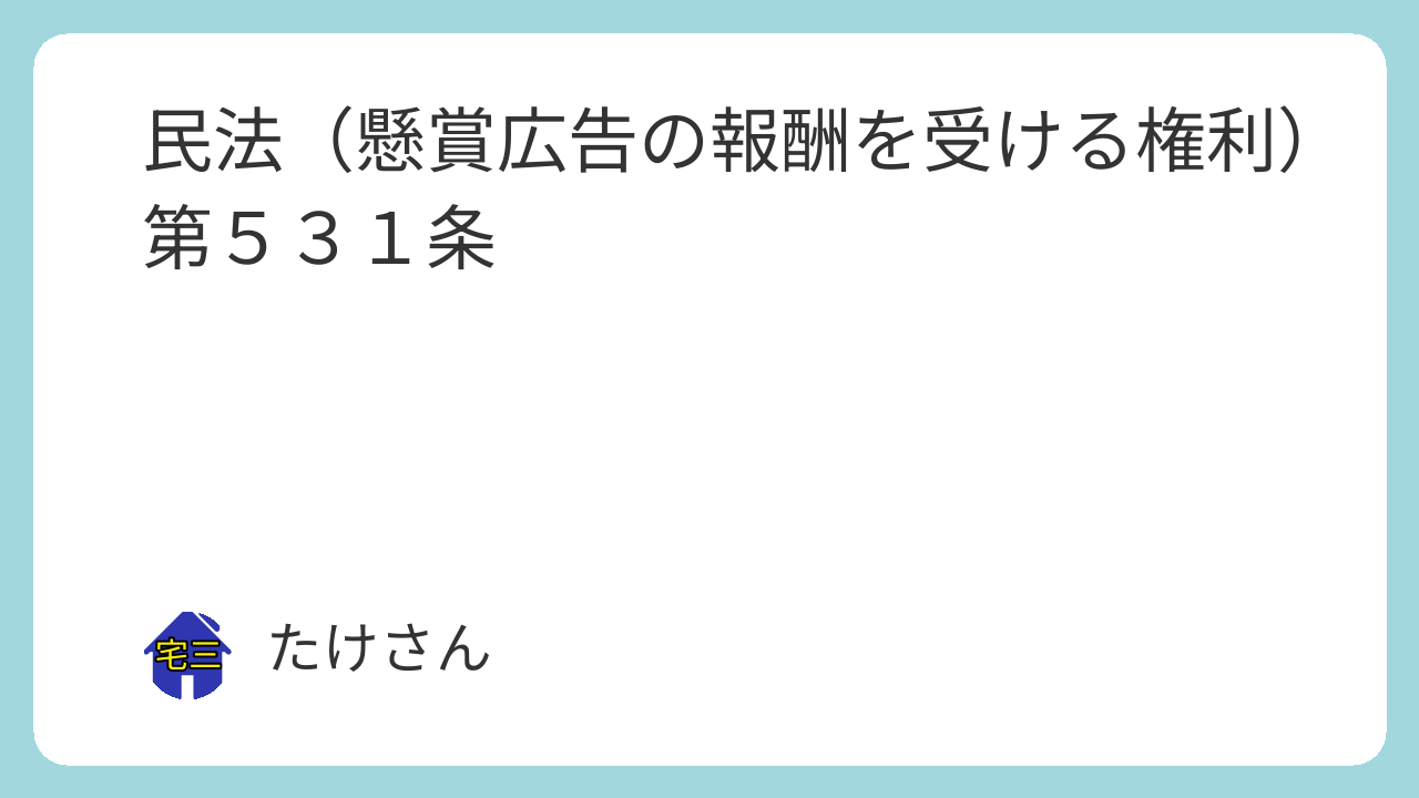第五百三十一条 広告に定めた行為をした者が数人あるときは、最初にその行為をした者のみが報酬を受ける権利を有する。