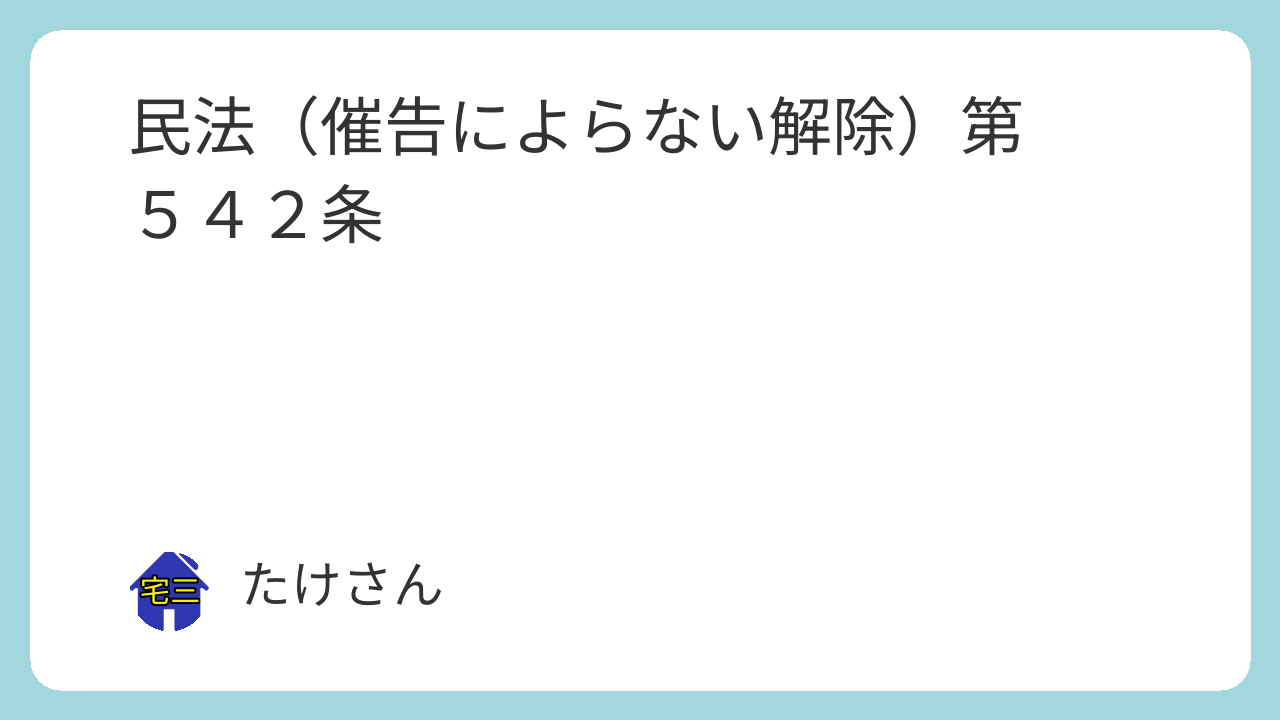 第542条 次に掲げる場合には、債権者は、前条の催告をすることなく、直ちに契約の解除をすることができる。