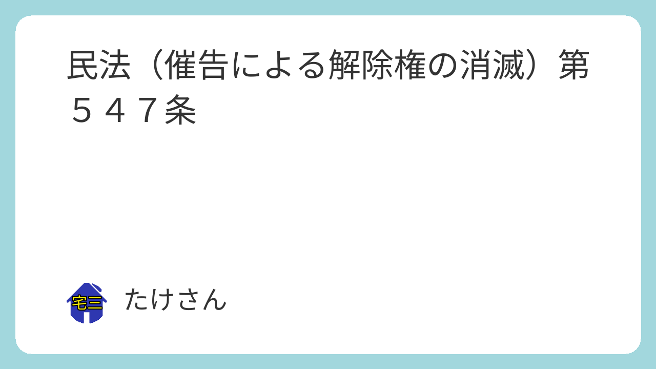 第五百四十七条 解除権の行使について期間の定めがないときは、相手方は、解除権を有する者に対し、相当の期間を定めて、その期間内に解除をするかどうかを確答すべき旨の催告をすることができる。この場合において、その期間内に解除の通知を受けないときは、解除権は、消滅する。