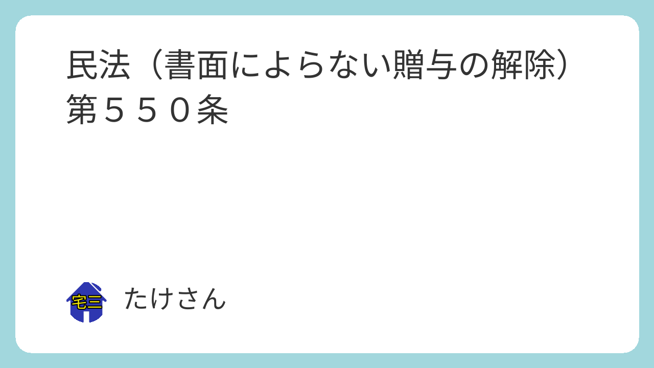第五百五十条 書面によらない贈与は、各当事者が解除をすることができる。ただし、履行の終わった部分については、この限りでない。