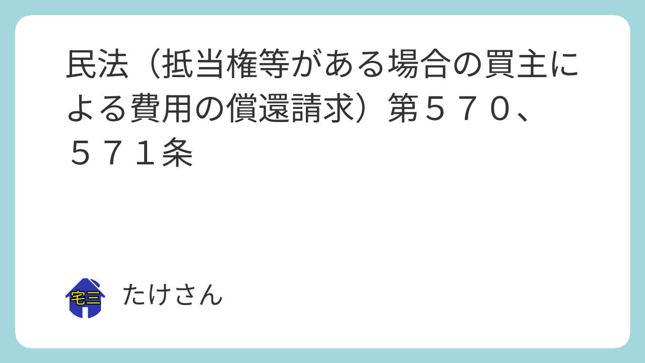 第五百七十条 買い受けた不動産について契約の内容に適合しない先取特権、質権又は抵当権が存していた場合において、買主が費用を支出してその不動産の所有権を保存したときは、買主は、売主に対し、その費用の償還を請求することができる。