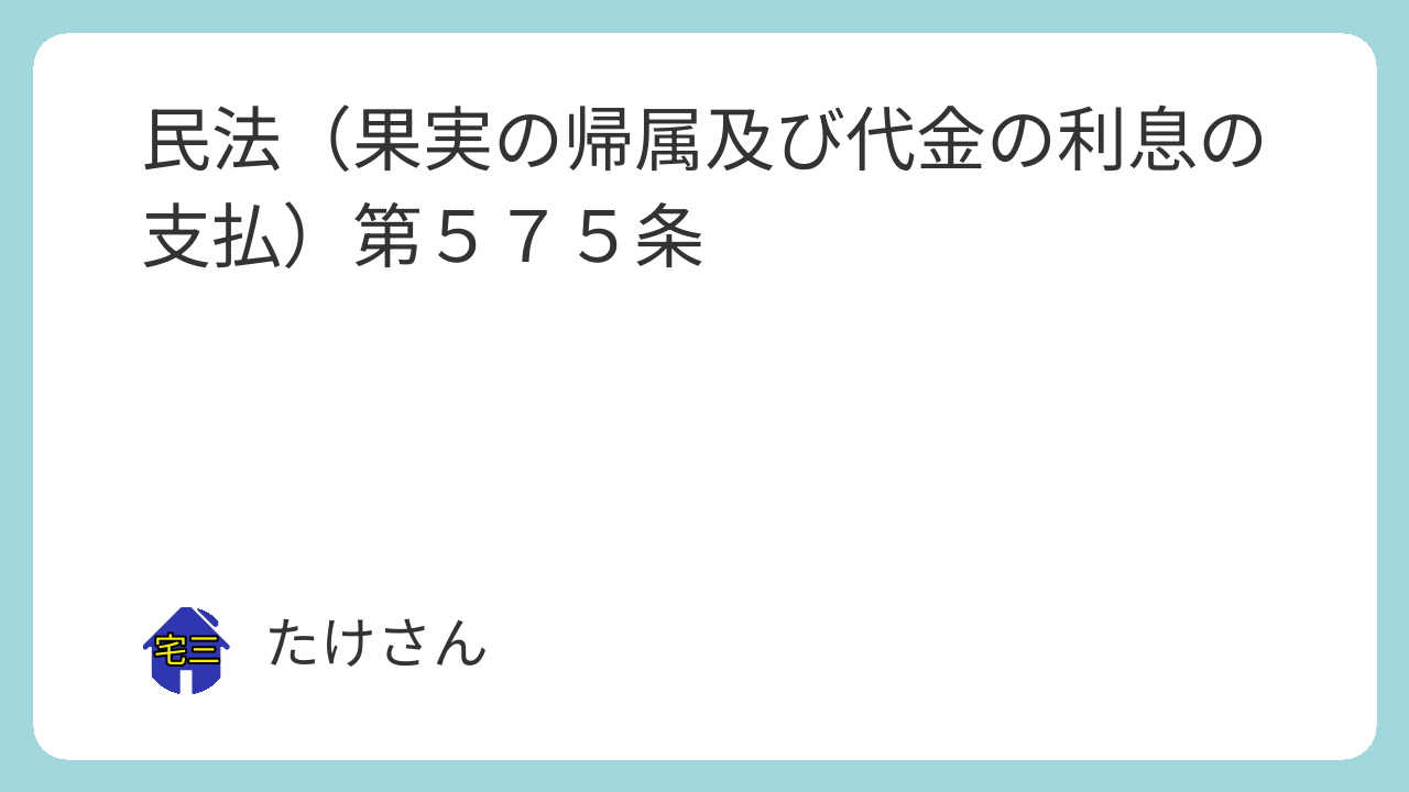 第五百七十五条 まだ引き渡されていない売買の目的物が果実を生じたときは、その果実は、売主に帰属する。
