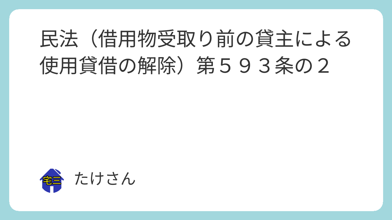 第五百九十三条の二 貸主は、借主が借用物を受け取るまで、契約の解除をすることができる。ただし、書面による使用貸借については、この限りでない。