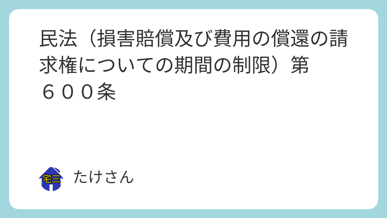 第600条 契約の本旨に反する使用又は収益によって生じた損害の賠償及び借主が支出した費用の償還は、貸主が返還を受けた時から1年以内に請求しなければならない。