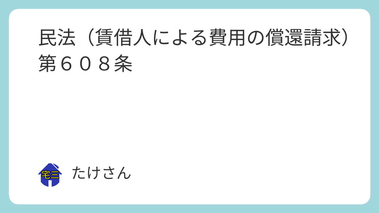 第六百八条 賃借人は、賃借物について賃貸人の負担に属する必要費を支出したときは、賃貸人に対し、直ちにその償還を請求することができる。