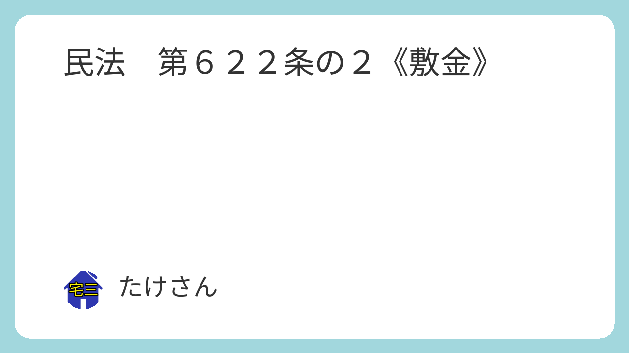 第622条の2 賃貸人は、敷金(いかなる名目によるかを問わず、賃料債務その他の賃貸借に基づいて生ずる賃借人の賃貸人に対する金銭の給付を目的とする債務を担保する目的で、賃借人が賃貸人に交付する金銭をいう。以下この条において同じ。)