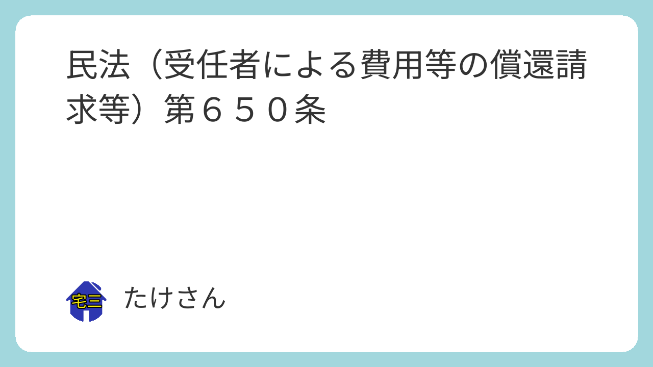 第650条 受任者は、委任事務を処理するのに必要と認められる費用を支出したときは、委任者に対し、その費用及び支出の日以後におけるその利息の償還を請求することができる。