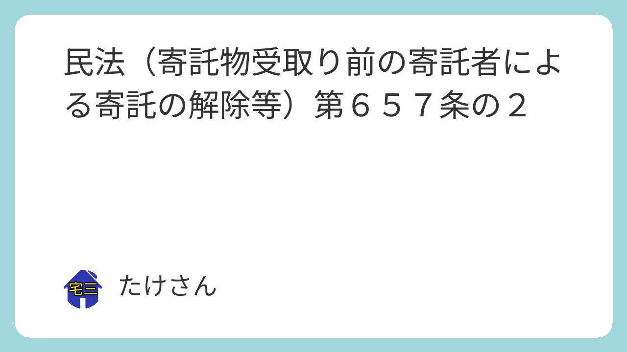第六百五十七条の二 寄託者は、受寄者が寄託物を受け取るまで、契約の解除をすることができる。この場合において、受寄者は、その契約の解除によって損害を受けたときは、寄託者に対し、その賠償を請求することができる。