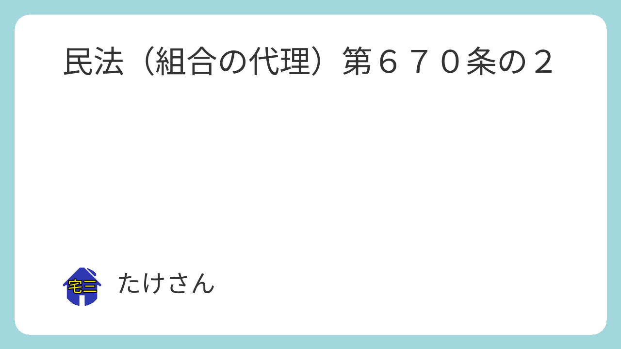 第六百七十条の二 各組合員は、組合の業務を執行する場合において、組合員の過半数の同意を得たときは、他の組合員を代理することができる。