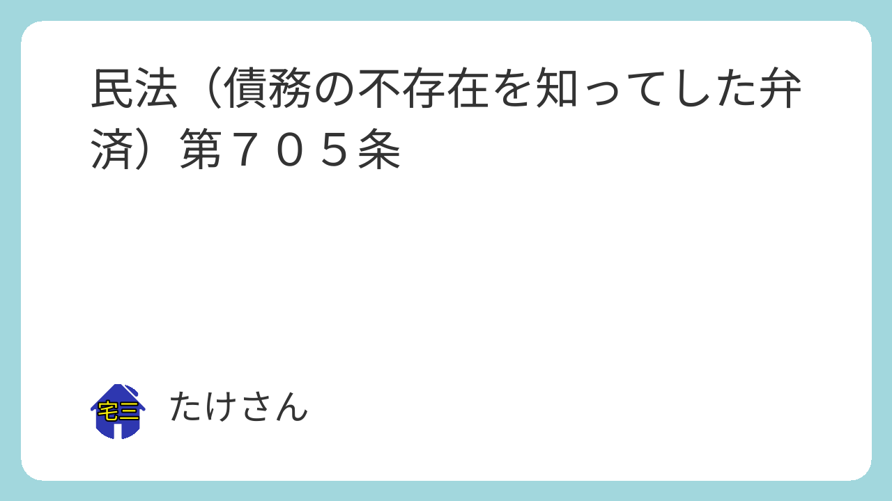 第七百五条 債務の弁済として給付をした者は、その時において債務の存在しないことを知っていたときは、その給付したものの返還を請求することができない。