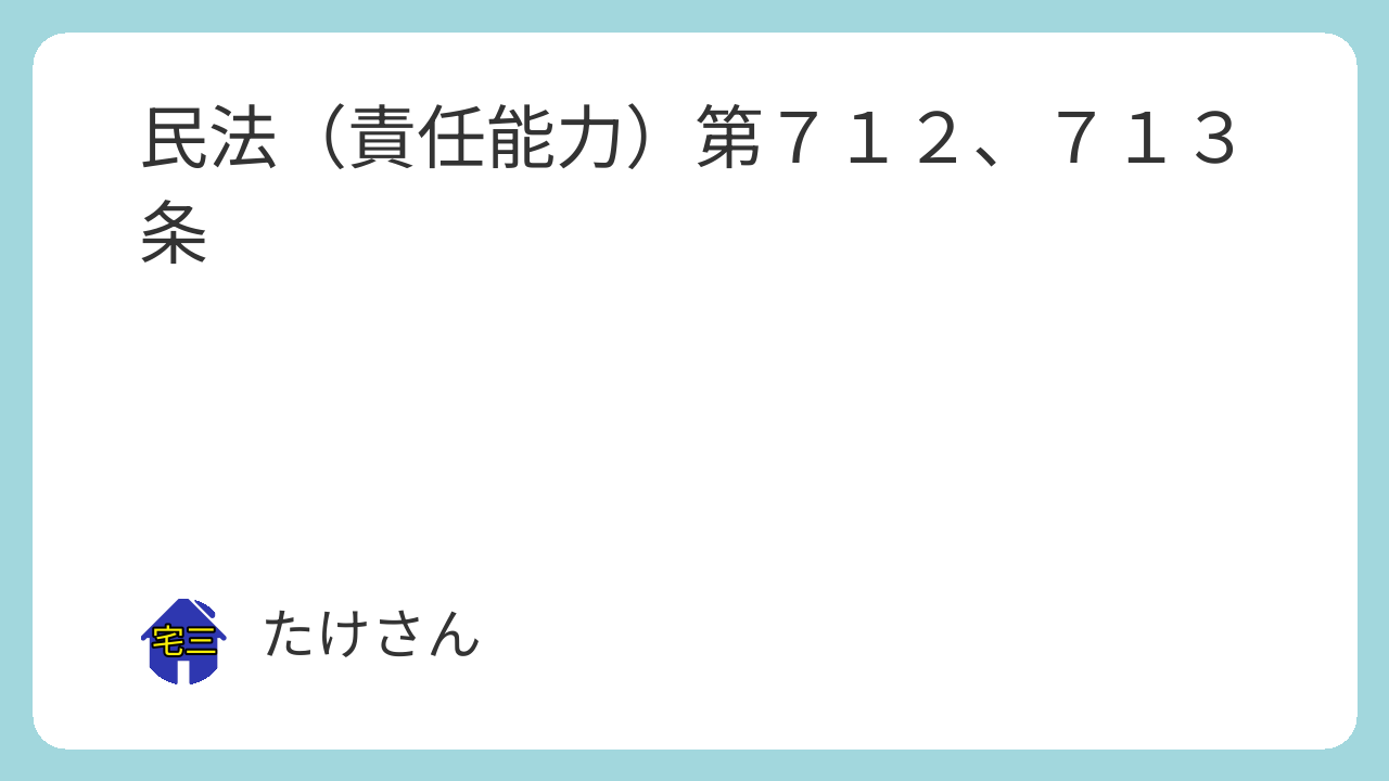 第七百十二条 未成年者は、他人に損害を加えた場合において、自己の行為の責任を弁識するに足りる知能を備えていなかったときは、その行為について賠償の責任を負わない。