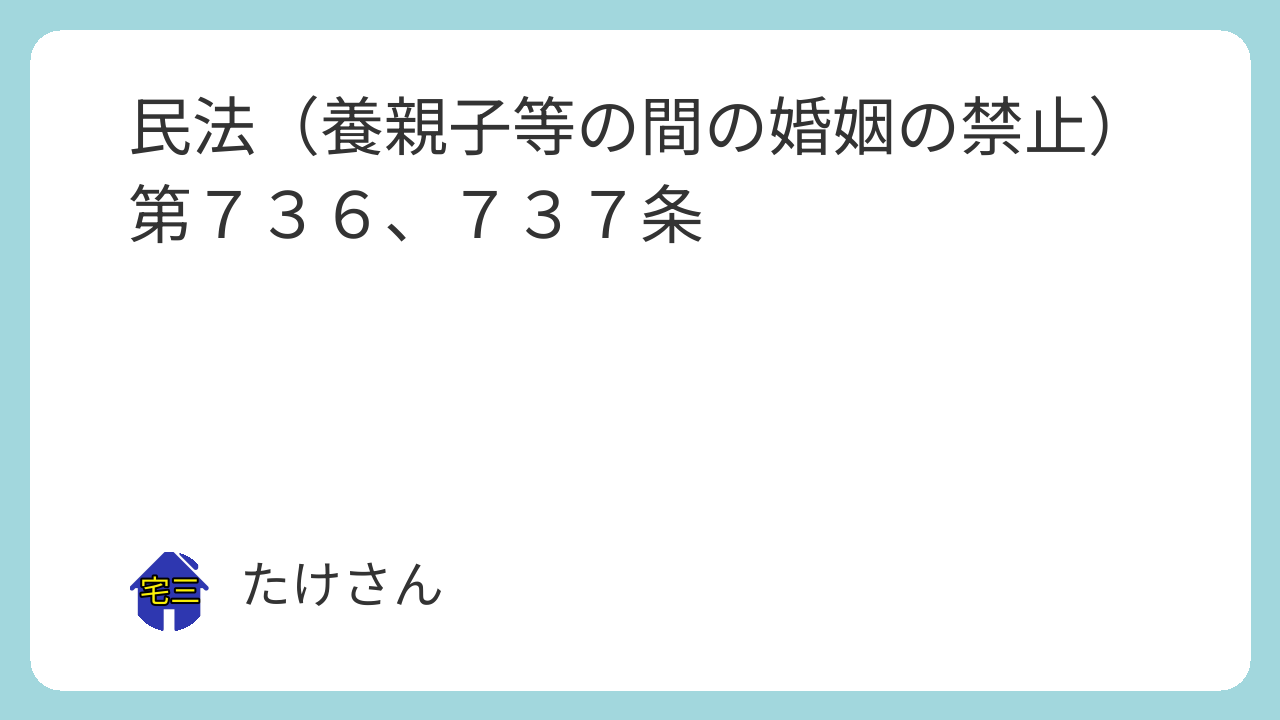 第七百三十六条 養子若しくはその配偶者又は養子の直系卑属若しくはその配偶者と養親又はその直系尊属との間では、第七百二十九条の規定により親族関係が終了した後でも、婚姻をすることができない。