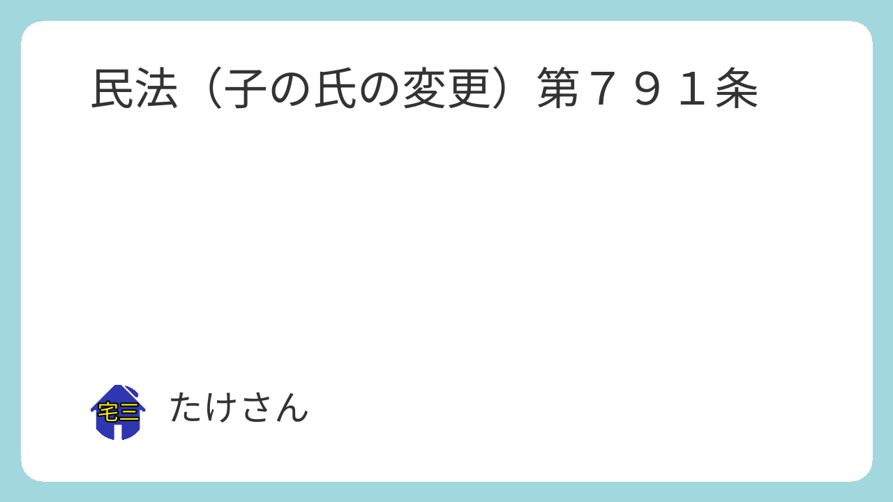 第七百九十一条 子が父又は母と氏を異にする場合には、子は、家庭裁判所の許可を得て、戸籍法の定めるところにより届け出ることによって、その父又は母の氏を称することができる。