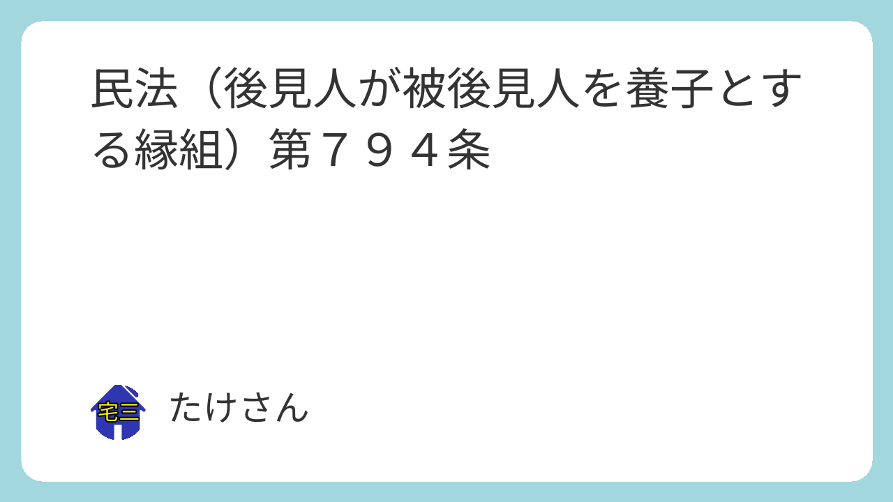 第七百九十四条 後見人が被後見人(未成年被後見人及び成年被後見人をいう。以下同じ。)を養子とするには、家庭裁判所の許可を得なければならない。後見人の任務が終了した後、まだその管理の計算が終わらない間も、同様とする。