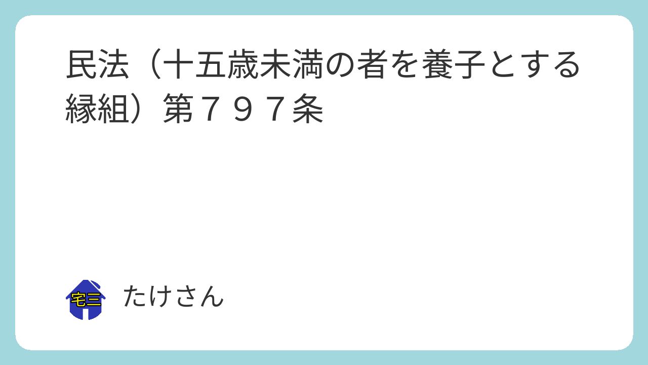 第七百九十七条 養子となる者が十五歳未満であるときは、その法定代理人が、これに代わって、縁組の承諾をすることができる。