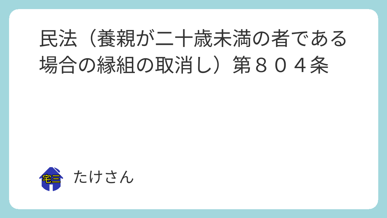 第八百四条 第七百九十二条の規定に違反した縁組は、養親又はその法定代理人から、その取消しを家庭裁判所に請求することができる。ただし、養親が、二十歳に達した後六箇月を経過し、又は追認をしたときは、この限りでない。