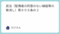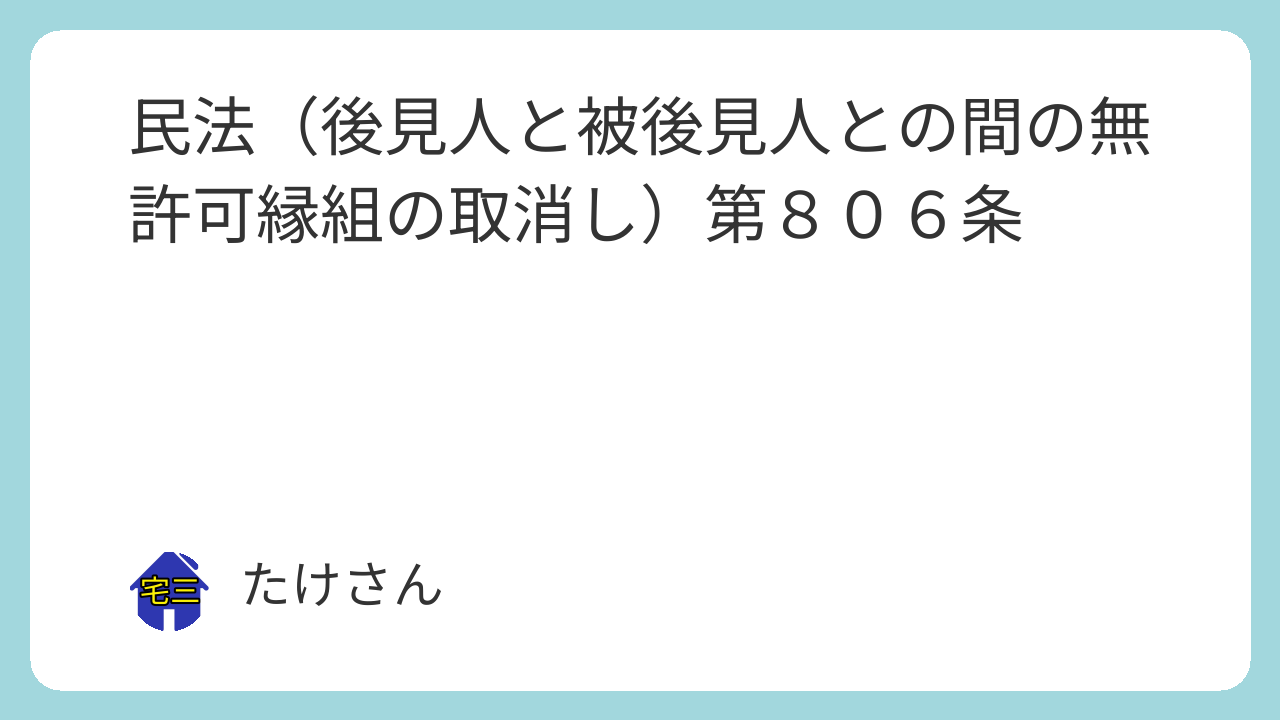 第八百六条 第七百九十四条の規定に違反した縁組は、養子又はその実方の親族から、その取消しを家庭裁判所に請求することができる。ただし、管理の計算が終わった後、養子が追認をし、又は六箇月を経過したときは、この限りでない。