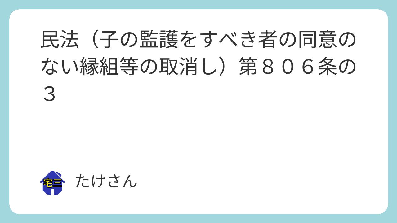 第八百六条の三 第七百九十七条第二項の規定に違反した縁組は、縁組の同意をしていない者から、その取消しを家庭裁判所に請求することができる。ただし、その者が追認をしたとき、又は養子が十五歳に達した後六箇月を経過し、若しくは追認をしたときは、この限りでない。